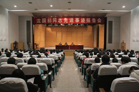 整个报告会现场气氛热烈、隆重,观众不时报以热烈的掌声。据悉,为对沈国初同志的先进事迹进行集中宣传推介,常德市市委宣传部、市政法委联合发文,要求在全市范围内对沈国初同志进行集中宣传,宣传时间为12月15日至12月20日,主要以报告会、媒体宣传、社会宣传等形式,深入学校、车站、企业等单位进行巡回演讲,对沈国初同志的先进事迹进行全方位宣传,号召广大群众学习沈国初同志的先进事迹,并踊跃为沈国初同志投票。 (记者 葛炎)