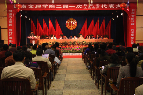 上午8点30分,会议正式开始,会议由校党委书记曹光荣主持。会议认真听取和审议了校长魏饴所做的校长工作报告和工会主席李克明所做的题为《总结经验,科学发展,立足本职,再创佳绩》的工会工作报告。随后,省教育工会主席李宪华发表重要讲话,他充分肯定了我校工会在过去的一年中做出的成绩,并希望新一届的工会继续努力,不断创新,锐意进取,再创辉煌。