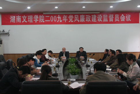 会议学习传达了中央、省、市党风廉政建设暨反腐败工作会议精神,学习了省、市关于反腐败案例通报,通报了我校2008年纪检监察工作情况和2009年纪检监察工作要点,部署了学校党风廉政建设监督员工作。