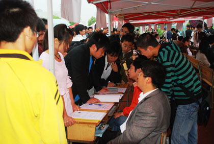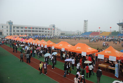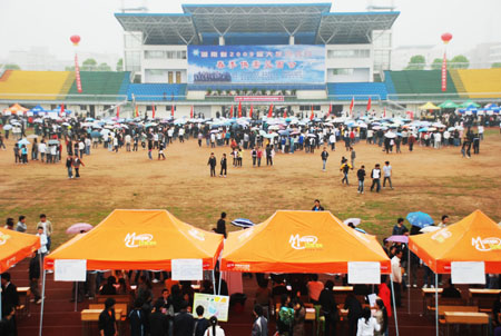4月18日,白马湖畔春意盎然。由共青团湖南省委员会、湖南省教育厅、湖南省青年企业家协会联合主办,共青团委常德市委员会、常德市教育局与我校共同承办的“湖南省2009届大学毕业生春季供需见面会”在体育场隆重举行。