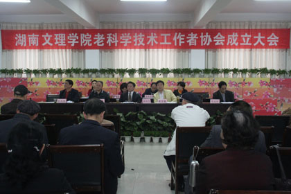 成立大会在庄严的国歌声中开始,大会由党委副书记周国忠主持。离退处党总支书刘仕坦介绍了湖南文理学院老科协成立筹备工作情况。副校长姚春梅宣读了湖南文理学院老科协工作者协会成立的文件。离退处处长助理刘大飞宣读了《关于湖南文理学院老科技工作者协会章程的决议》。
