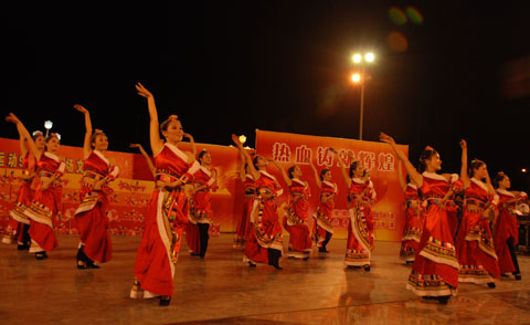 整场晚会节目内容丰富、异常精彩。雄壮嘹亮的大合唱《祖国颂》拉开了晚会帷幕。歌曲《你让我感动》深情绵延,《红旗颂》、《永远跟党走》激情豪迈;极富民族风情的舞蹈《雪域高原》、《唐古拉风》优美多姿、引人入胜;充满激情的现代舞《永恒的心》秀出大学生的青春活力;群舞《千红》则舞出了喜庆的节日气氛;精彩的铜管乐合奏《中国人》更是把整场晚会推向了最高潮。最后,晚会在澎湃激昂的大合唱《年轻的朋友来相会》中圆满落幕。