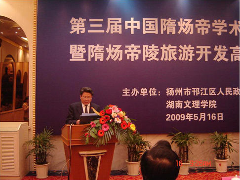 5月16日,由扬州市邗江区人民政府和湖南文理学院共同主办的“第三届中国隋炀帝学术研讨会暨隋炀帝陵旅游开发高层论坛”在扬州举行,来自中国社会科学院、湖南文理学院、扬州大学、河南省社会科学研究院等国内知名专家学者、旅游规划开发专家以及杨氏后裔代表60多人齐聚扬州,对隋文化进行了深度挖掘。校党委副书记周国忠,扬州市人民政府副市长王玉新,扬州市政协副主席、扬州旅游局局长王克胜等领导出席了论坛。
