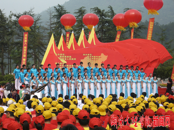 6月28日上午,由国家旅游局、湖南省人民政府主办的“同唱红色歌,激情红色游”大型主题活动暨全省高校合唱比赛决赛在韶山毛泽东广场举行,我校音乐学院师生组成的合唱团以昂扬的精神面貌、高超的演唱技巧折服现场的评委和观众,以第一名的成绩获得一等奖。