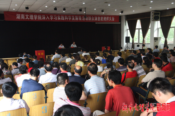 9月8日下午,我校在船型楼召开深入学习实践科学发展观活动群众满意度测评大会,全体校领导、中层干部、教职工代表及学生代表共计125人参加会议,校深入学习实践科学发展观活动领导小组副组长、党委副书记石子球主持会议,校深入学习实践科学发展观活动领导小组组长、党委书记曹光荣发表重要讲话。