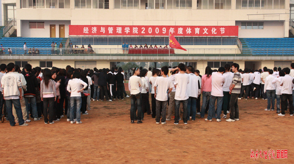 为全面贯彻德、智、体全面发展的教育方针,弘扬奥运精神,构建和谐校园,10月25日,我校经济与管理学院举办的首届体育文化节在第一田径场隆重开幕。副校长龚作奇,校体委、学工部、团委、体育学院以及经管学院相关负责人出席了开幕式。