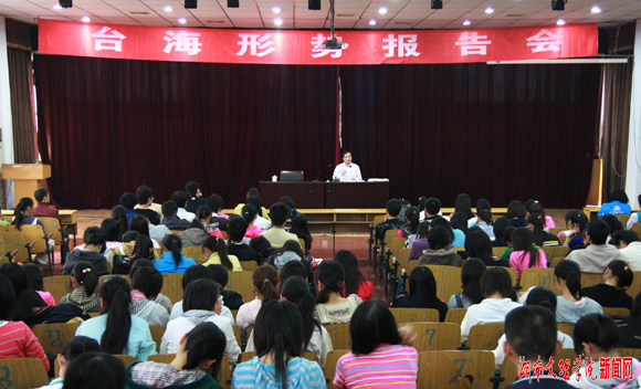 10月27日下午,常德市市委统战部副部长、市台办主任雷斌全应邀在船型楼二楼多功能报告厅为我校师生作了一场台海形势报告会。报告会由党委副书记石子球主持。