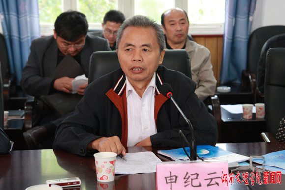 申纪云副厅长就如何根据当前社会需要加强学科建设、如何通过加强学科建设来促进人才培养质量的提高及怎样加强产学研合作和人才引进等相关问题发表了重要讲话。他说,学科建设水平是学校水平的重要标志,学校 办学水平的高低、社会声誉的好坏都最终取决于学科建设水平的高低;高校要始终根据国家、地方社会经济发展的需要做好学科建设规划,理清建设思路,明确建设目标,整体规划、分层建设、重点突破,提高学校办学水平;高校要通过科研创新加快促进知识更新,要将现代教育的新理念、新思想和新方法不断引入到教学实践中去,进一步提高人才培养质量。