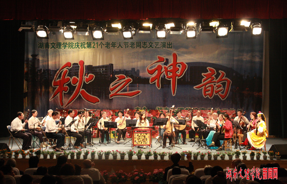 10月29日晚,我校庆祝老年人节“秋之神韵”文艺晚会在音乐厅举行。为隆重庆祝第二十一个老年人节,我校举办了系列活动,除了文艺晚会,还举办了游园会、书法、绘画、手工制品、科研论文等实物在内的展览,还联合某药品公司为老教师提供了诸如免费检查、健康咨询、理疗等系列健康知识服务。