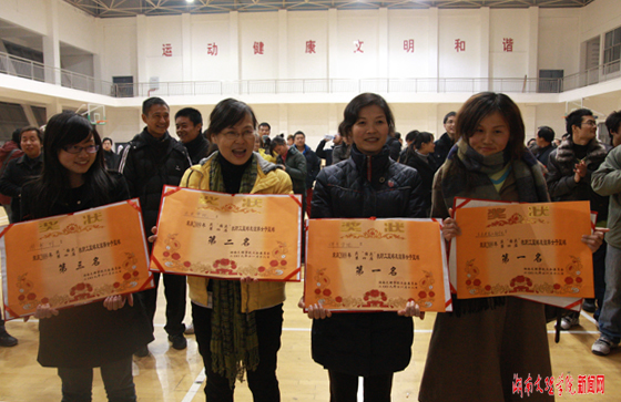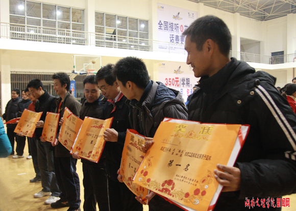 在闭幕仪式上,本次比赛的总裁判长杨德银宣布了比赛结果:男子组第一名的桂冠由体育学院和电气学院共同摘得,法学院、计算机学院分列第二、第三名。荣获女子组第一名的是体育学院和土建学院,文史学院、图书馆位列第二、第三名。此外,本次比赛还评出了四个体育道德精神文明单位,他们分别是后勤集团、继续教育学院、文史学院以及外国语学院。随后,校工会主席刘孟初,副主席彭培兰、刘万桂以及体育学院副院长毛治和、吴步阳等为获奖单位颁发荣誉证书。