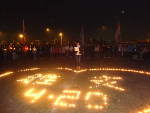本网讯(通讯员 武申 记者 吴敏)4月21日晚7点,我校青年团员在第二田径场自发组织“雅安加油”——为雅安地震遇难同胞悼念活动。校团委、学生团体联合会、微博协会以及17个学院的400多名团干部和团员代表参与了活动。广大团员带着对雅安遇难同胞的祝福默哀三分钟,来自四川的陈美璇同学发表了感人的讲话。