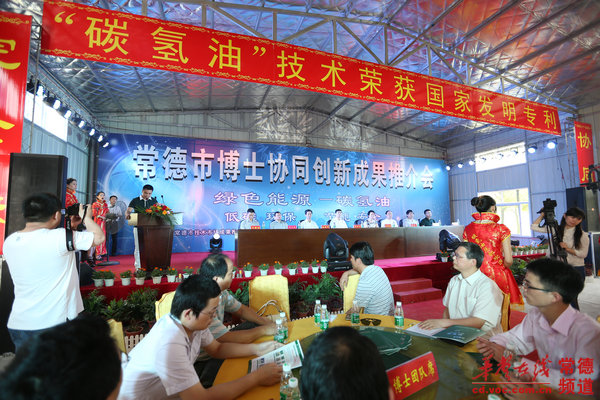 本网讯(记者 王松青 沽月)5月24日上午,常德市政府在湖南常德中南院科新能源研究所举办常德市博士协同创新成果推介。会上,常德市人民政府副市长匡加才对我校博士团队自主研发的科技创新成果——碳氢油系列产品及其应用进行了重点推介。