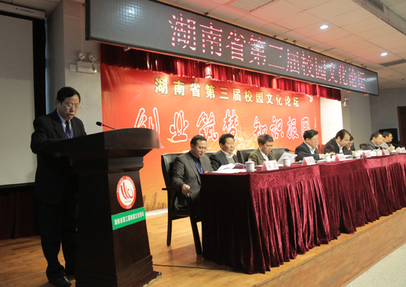 11月19日,全省第三届校园文化论坛在怀化学院举行。省委常委、宣传部长许又声,省委宣传部副部长魏委、张志初,省委教育工委副书记夏智伦、宣传部部长曾力勤等出席论坛。我校正校级督导石子球在论坛上,以“打造校园文化品牌,提升文化育人功能”为题,向参加论坛的全体人员介绍了我校校园文化建设的先进经验。
