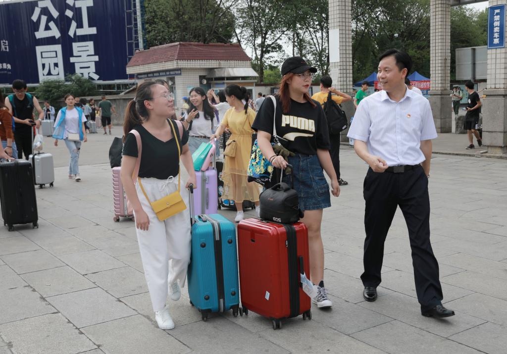 学校校长龙献忠,副校长刘春晖在百忙中抽出时间,开车到火车站迎接学生到校。艺术学院17级的樊凯玥和同学坐上了龙校长的私家车,她告诉记者,“龙校长很亲切,一路上都在对我们嘘寒问暖,还主动帮我们提行李。”