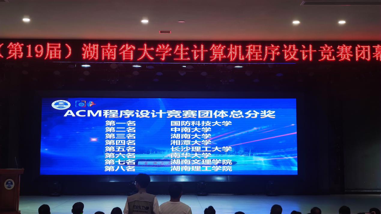 本网讯(通讯员 屠添翼)9月17日,湖南省第十九届大学生计算机程序设计ACM竞赛圆满收官,我校荣获全省高校团体第七名的好成绩,名列全省同类高校第一。该项赛事共设置15个一等奖,我校计电学院吴立强、邓成浩、刘枭三位同学组成的代表队突出重围勇夺一等奖,成为同类院校中唯一获得该项赛事一等奖的学校,算法竞赛团队荣获二、三等奖各1项。