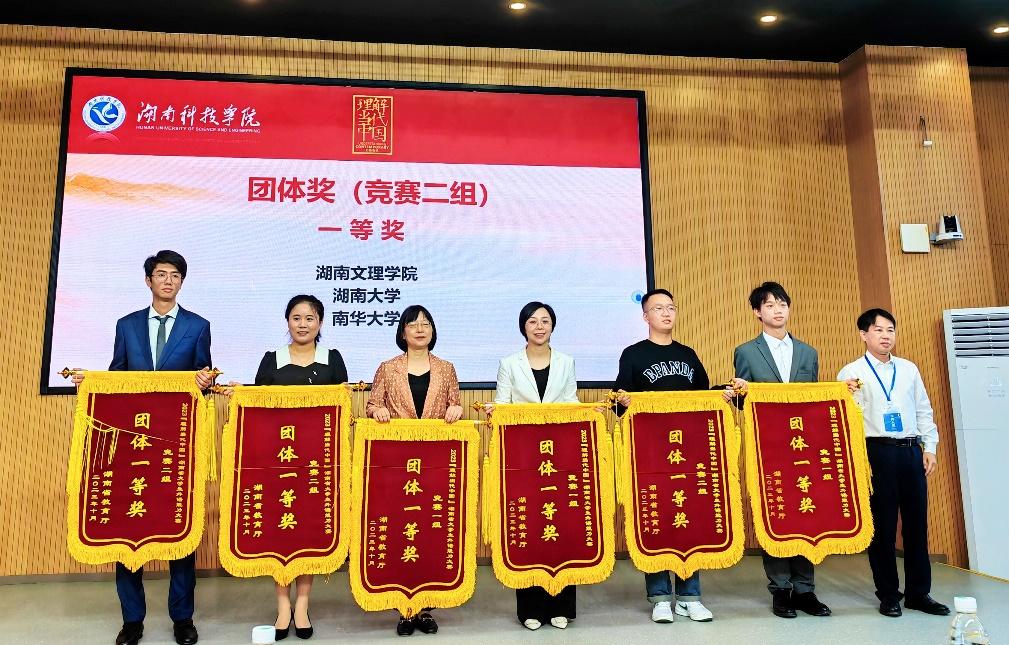 本网讯(通讯员 唐文璐)10月27日至29日,2023“理解当代中国”湖南省大学生外语能力大赛在湖南科技学院举行。我校代表队以总分第一的优异成绩获得竞赛二组团体一等奖,这也是我校连续第四年斩获该赛事团体一等奖。
