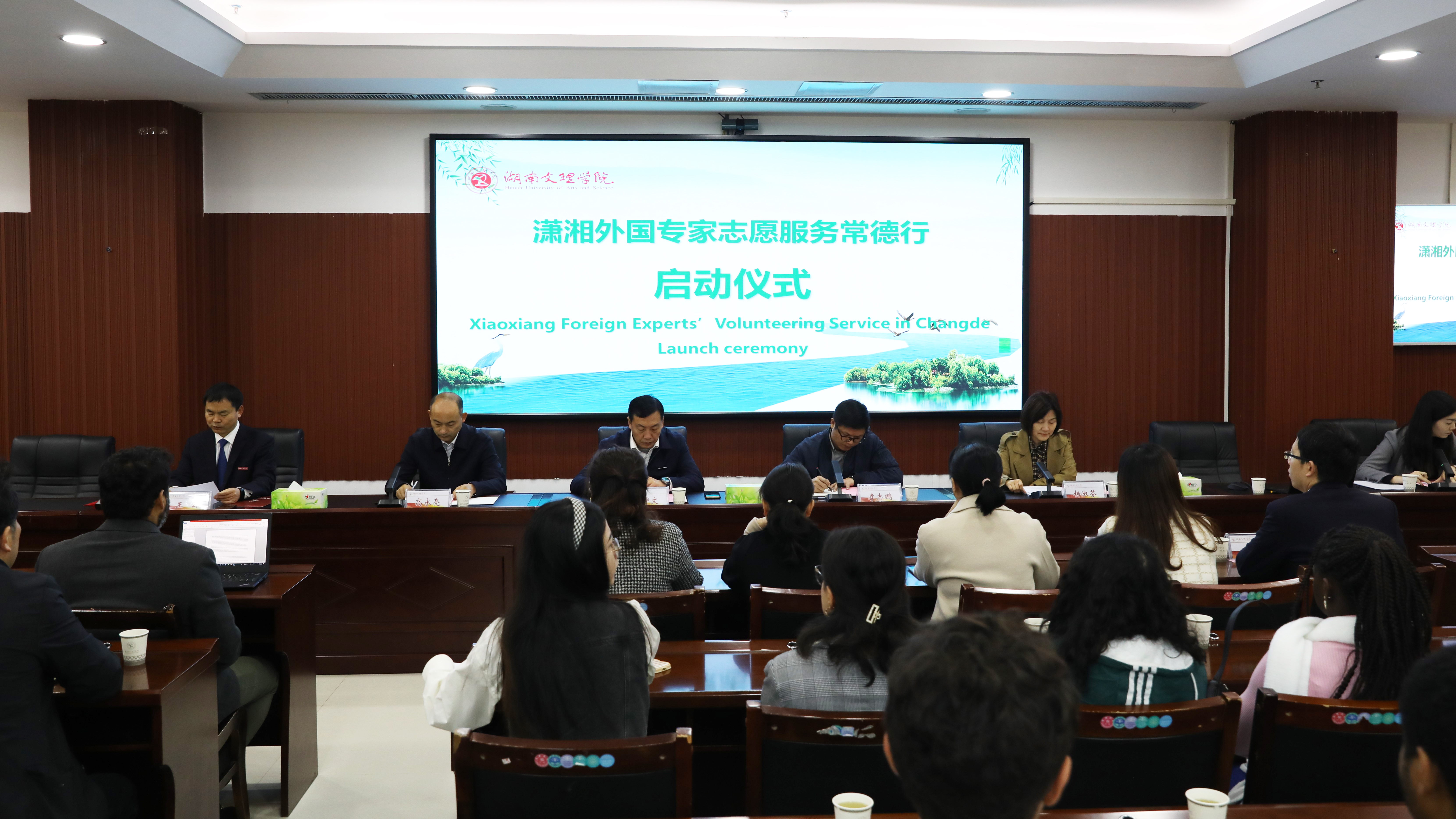 本网讯(记者 韩禹涵 摄影 吴洋婷 王玉瑶)11月24日,“潇湘外国专家志愿服务常德行”活动在我校启动,本次活动由湖南省科学技术厅、常德市委外事办、常德市科学技术局指导,湖南文理学院主办。湖南省科技厅对外科技交流中心项目部副部长李志鹏,我校党委副书记、校长刘宇文,常德市科技局党组成员、副局长高永亮,常德市对外友协专职副会长杨淑芬等出席启动仪式。来自全省各高校的外国专家、留学生志愿者代表,我校生命与环境科学学院、外国语学院青年志愿者参加启动仪式。生环学院院长王云主持仪式。