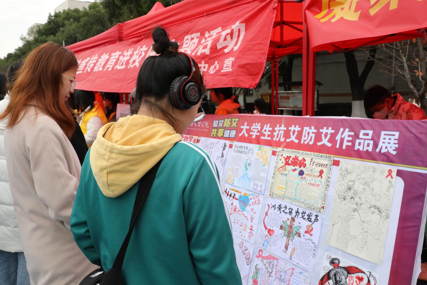 天朗气清,惠风和畅。在活动现场,学校团委、学工部、后勤基建处、国际学院团总支、医学院团总支一起举行了“知艾防艾 共享健康”预防艾滋病宣传活动。手抄报、海报、征文、短视频等多种宣传形式和内容吸引了数千青年学生前来参与活动。医护人员用简洁明了的方式为大家讲解艾滋病的预防和自我保护方法,让同学们更加清晰地了解艾滋病的危害和有效地预防技巧。活动现场还有HIV免费检测、问卷调查、防艾知识竞答等多个趣味环节,让青年学生在活动中了解了防艾知识,提高了自我防范能力。