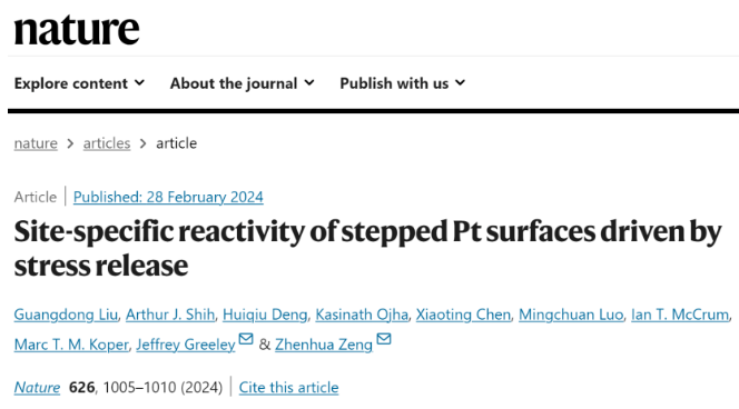 本网讯(数理学院 供稿)从湖南文理学院走出去的博士后、数理学院物理学专业2011级校友刘广东博士在湖南大学邓辉球教授指导下,于北京时间2月28日以第一作者在国际著名学术期刊《Nature》上发表了一篇题为《Site-specific reactivity of stepped Pt surfaces driven by stress release》的文章并引起较大反响。