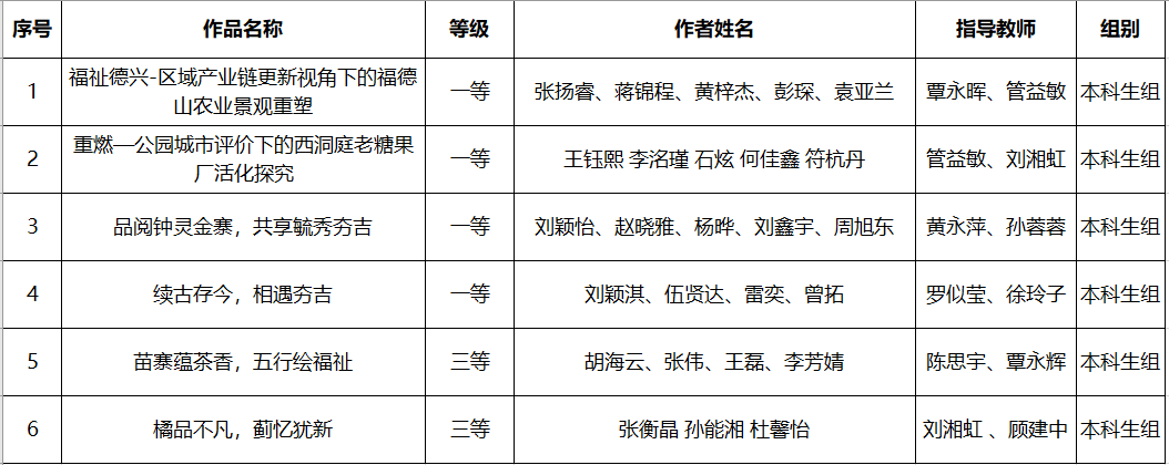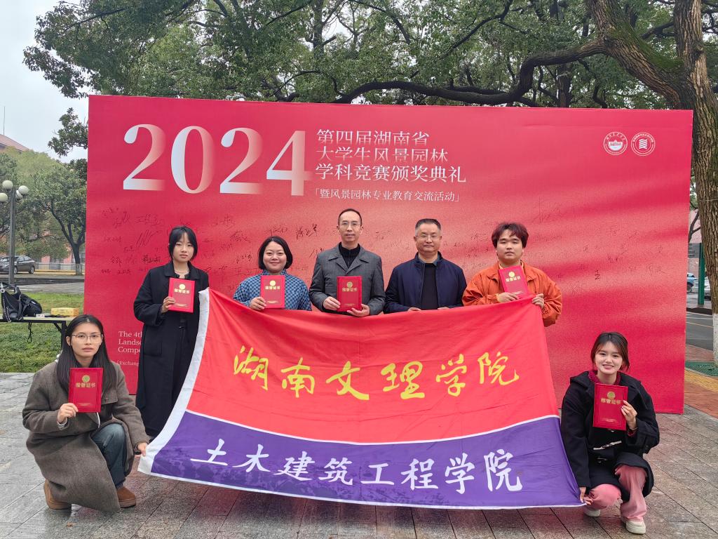 本网讯(土建学院 供稿)3月17日,湖南省第四届大学生风景园林学科竞赛圆满落幕。我校城乡规划专业和风景园林专业学子经过激烈角逐,凭借扎实的专业知识、新颖的设计理念和突出的团队协作精神,从省内众多出色的参赛队伍中脱颖而出,荣获一等奖4项、三等奖2项,总成绩稳居本科组全省第一。覃永晖、管益敏、黄永萍、罗似莹4位老师获评优秀指导老师。