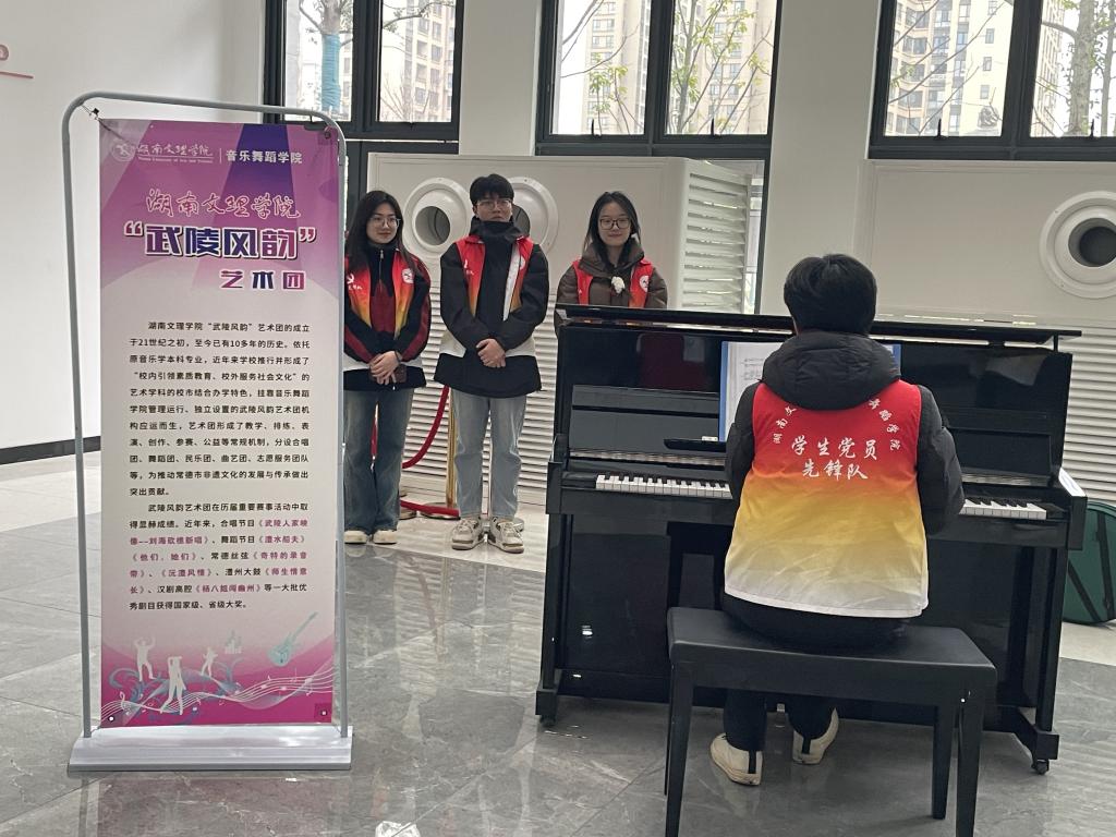 在“雷锋家乡学雷锋”百万青少年志愿服务实践育人行动暨湖南省大学生社区实践计划启动仪式上,我校“墩苗工程”社会实践队应邀参加路演,向全省青年大学生介绍校地联动志愿服务成果,展现文理青春风采,获评湖南省大学生社区实践计划十大典型示范项目。音乐舞蹈学院的志愿者发挥专业优势,在常德市第一中医医院“武陵风韵爱心音乐角”为医院的患者和工作人员带来了一场独特的音乐疗愈体验。数理学院“绿叶舟”青年志愿服务队在武陵区白马湖街道为社区居民进行义务家电维修。生命与环境科学学院青年志愿者深入田间地头,为武陵区丹洲乡长湖村和三湖村的农民提供专业的指导和帮助,以实际行动助力春耕生产,将志愿服务的种子播撒在希望的田野上。