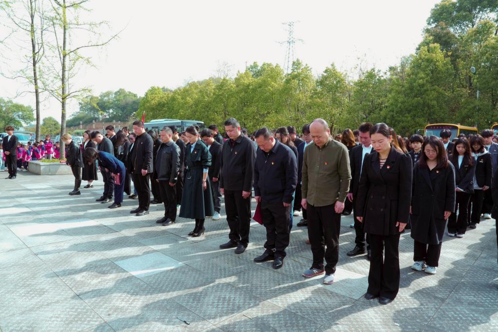 本网讯(文字 陈平涛 图片 袁熙茗)青松翠柏守英烈,春风白花寄哀思。为纪念中国人民抗日战争暨世界反法西斯战争胜利80周年,进一步加强我校师生革命传统教育和爱国主义教育,4月3日上午,学校100余名青年师生在常德市桃源县烈士陵园开展“追寻先烈伟绩,传递燎原星火”主题团日活动,机关党委、团委以及各学院师生代表参加,文史与法学学院党委副书记周永明主持活动。
