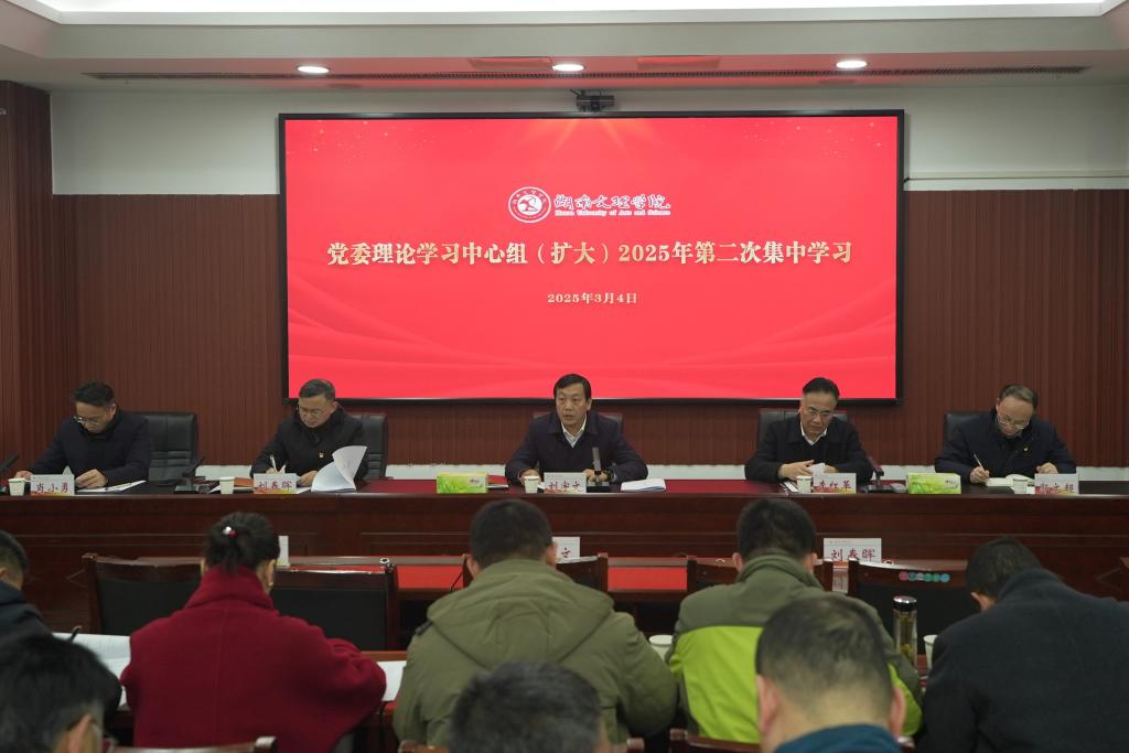 本网讯(文字 陈馥珺 图片 廖心玲 陈美莲)3月4日下午,学校党委理论学习中心组(扩大)2025年第二次集中学习在逸夫楼B603举行。本次学习聚焦“全面落实习近平总书记关于湖南工作的重要讲话和指示批示精神,培育和发展新质生产力,推进常德市合成生物制造产业高质量发展”这一主题,旨在深入学习贯彻习近平总书记的重要讲话精神,把握合成生物制造产业发展的新机遇,推动学校在服务地方经济社会发展方面发挥更大作用。学习由党委副书记、校长刘宇文主持,全体校领导及各单位主要负责人参加学习。