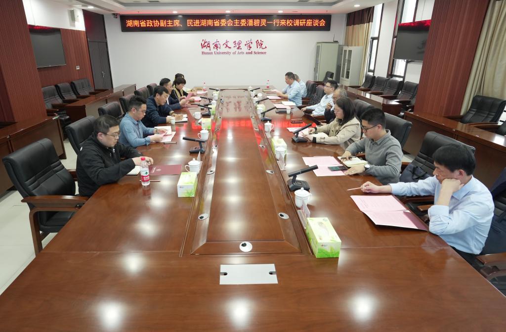 本网讯(文字 易姣 图片 韩康桥)4月7日下午,湖南省政协副主席、民进湖南省委会主委潘碧灵,民进湖南省委会组织处处长周莉一行来我校调研,常德市政协主席、党组书记黄清宇陪同调研。我校党委副书记、校长刘宇文,党委副书记李红革出席调研座谈会。李红革主持座谈会。