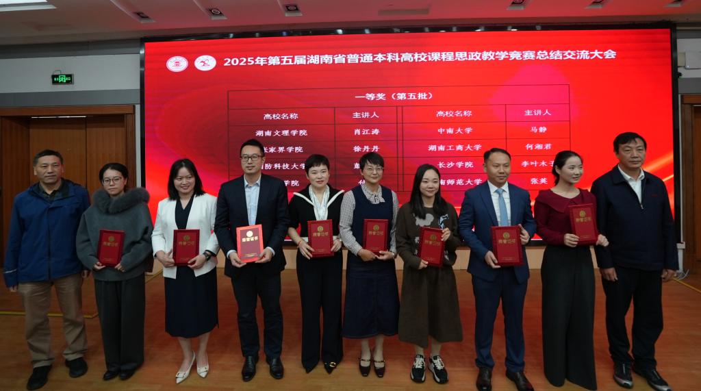 本网讯(文字 胡宏军 图片 黄梓佟 陈可丽)10月18日至20日,由湖南省教育厅主办,湖南文理学院承办,高等教育出版社协办的第五届湖南省普通本科高校课程思政教学竞赛在我校举行。我校教师在此次竞赛中表现优异,荣获一等奖5项、二等奖2项,学校获评“优秀组织奖”。