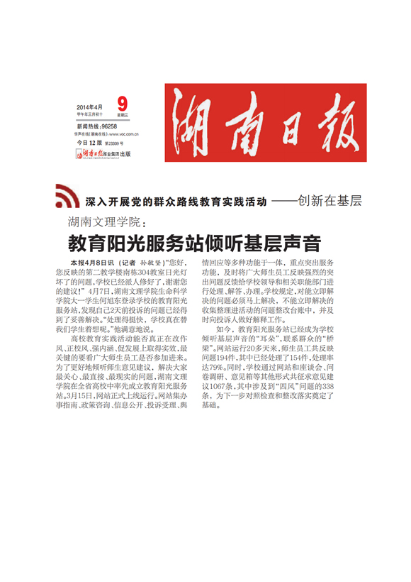 湖南日报:湖南文理学院教育阳光服务站倾听基层声音