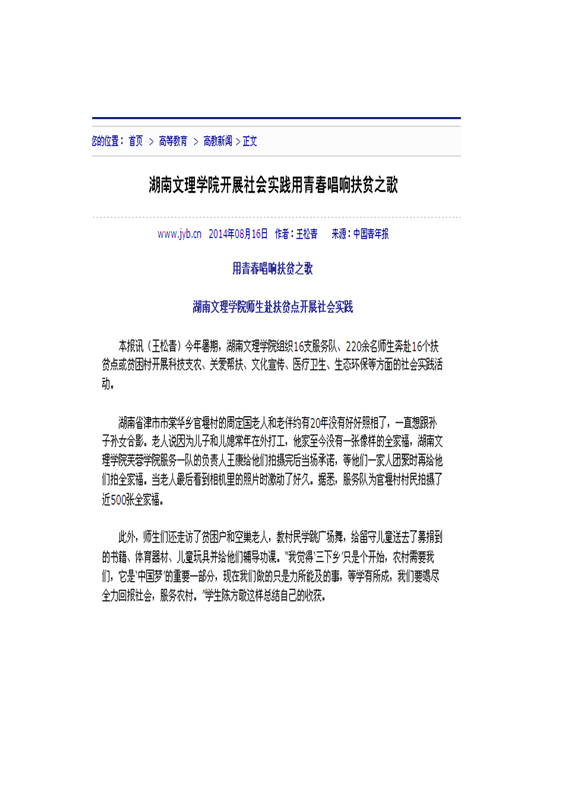 中国教育新闻网:湖南文理学院开展社会实践用青春唱响扶贫之歌