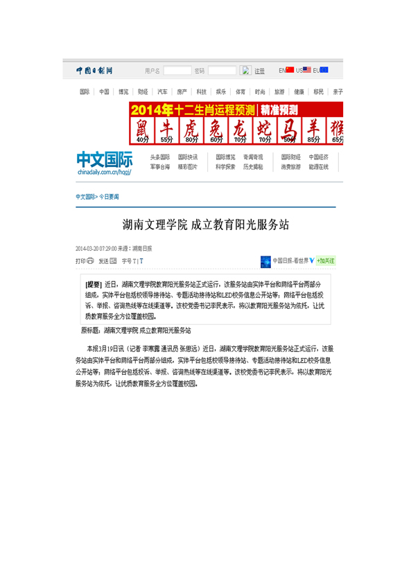 中国日报:湖南文理学院成立教育阳光服务站