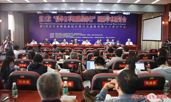 16日上午8点,国际学术研讨会开幕式在船型楼多功能报告厅举行。中国抗日战争史学会会长步平,湖南省历史学会会长王晓天,我校党委书记魏饴,哈尔滨社科院副院长郑懋晓,湖南省幼儿师范高专学校校长郭立纯,北京大学历史学教授徐勇,常德市委宣传部副部长张志平,上海交通大学东京审判研究中心研究员王选,我校细菌战罪行研究所首席专家陈致远,中国、日本、美国从事侵华日军细菌战研究的70余位专家学者,中央电视台、光明日报、中国教育报、南方都市报、湖南日报、湖南卫视、中国青年网、常德日报、常德晚报等十多家媒体的记者以及我校文史学院的100余名师生参加了开幕式。我校副校长姚春梅主持开幕式。