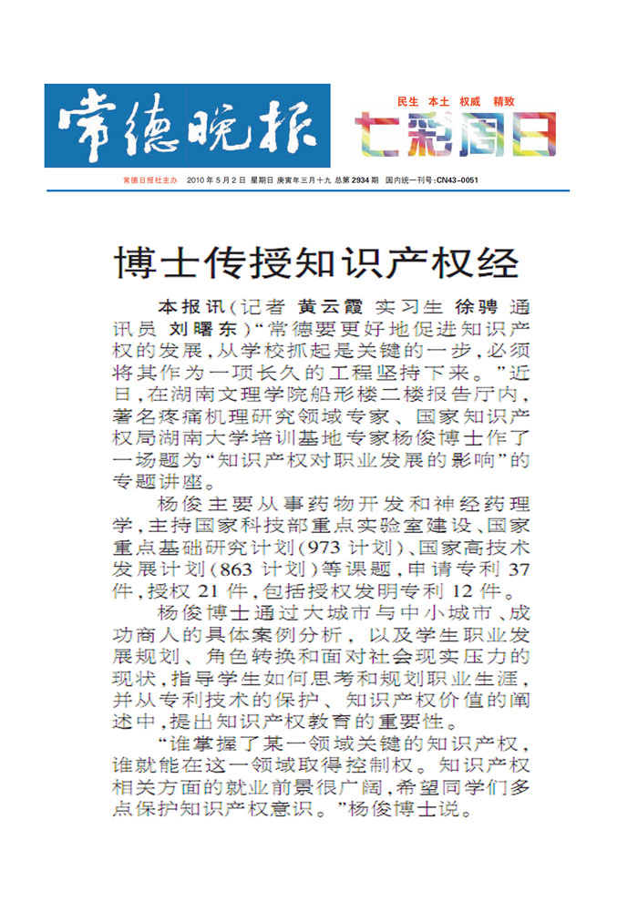 《常德晚报》博士传授知识产权经