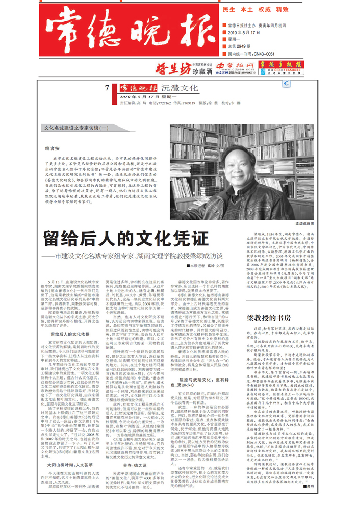 《常德晚报》留给后人的文化凭证—湖南文理学院梁颂成教授访谈