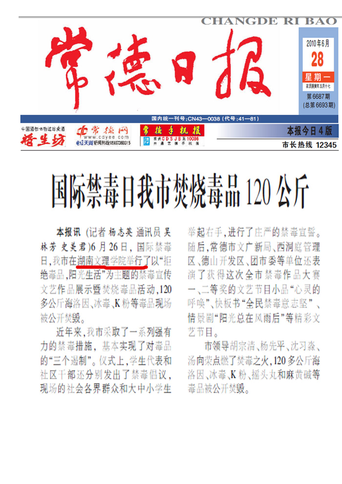 《常德日报》 国际禁毒日我市焚烧毒品120公斤