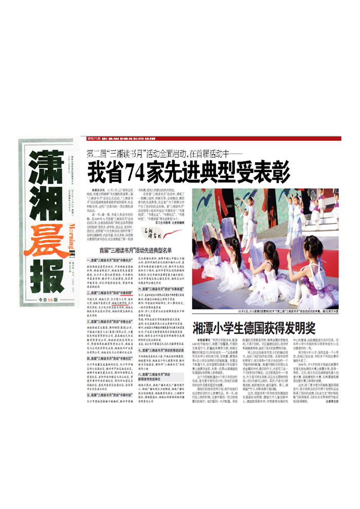 《潇湘晨报》 书香校园表彰