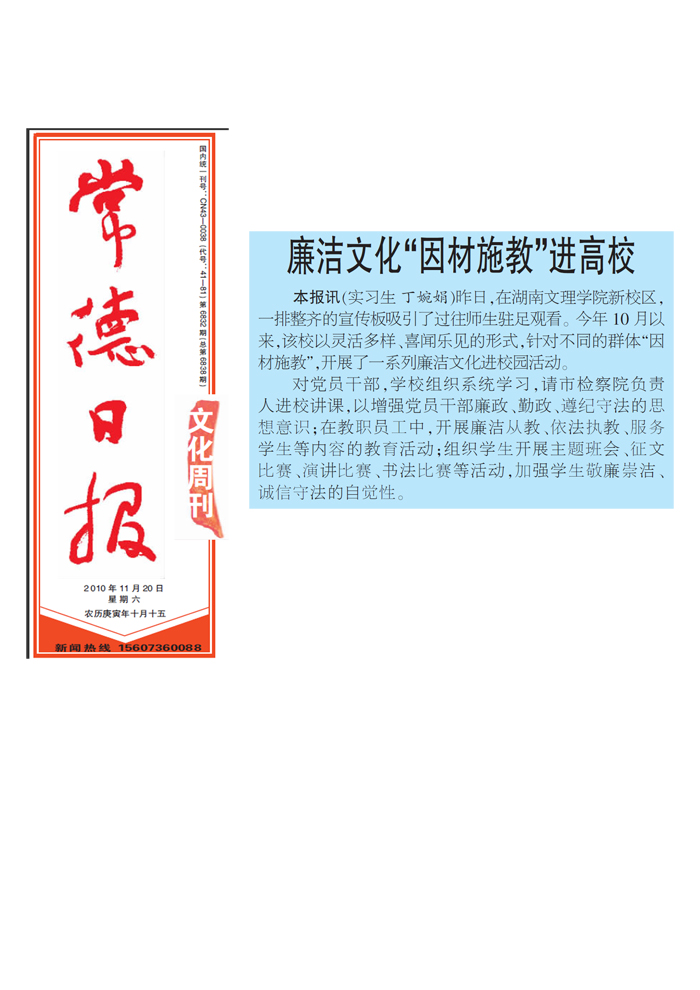 《常德日报》廉洁文化“因材施教”进高校