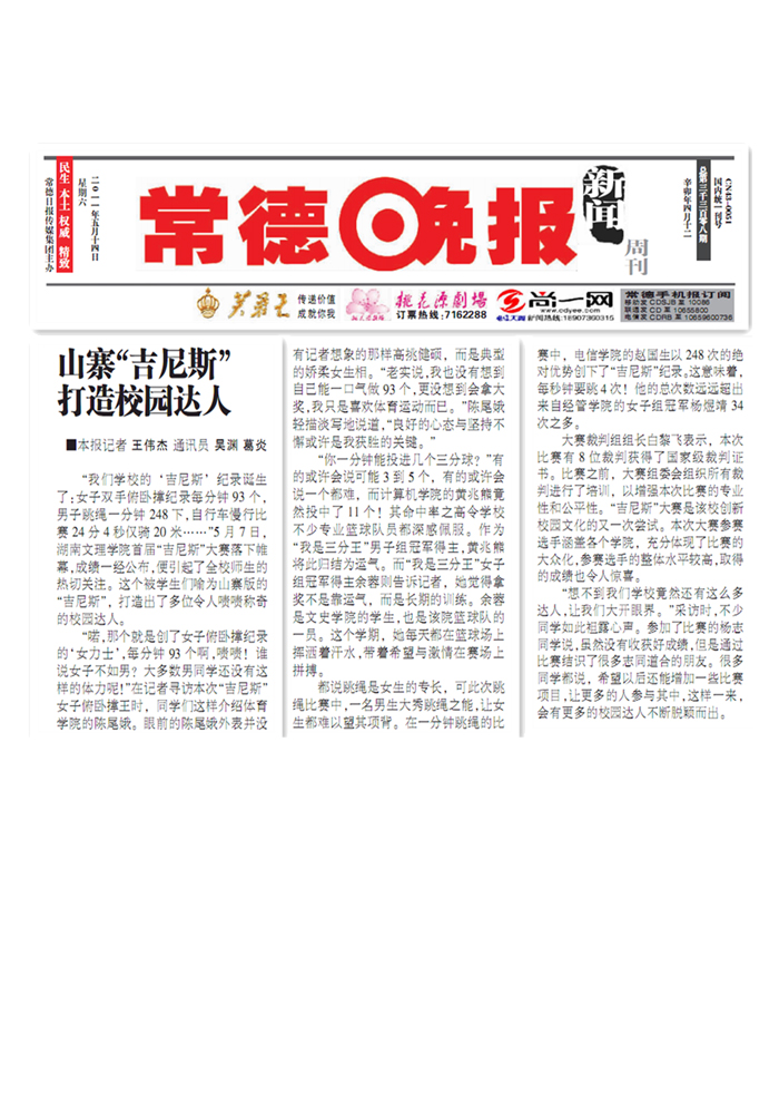 《常德晚报》山寨“吉尼斯”打造校园达人