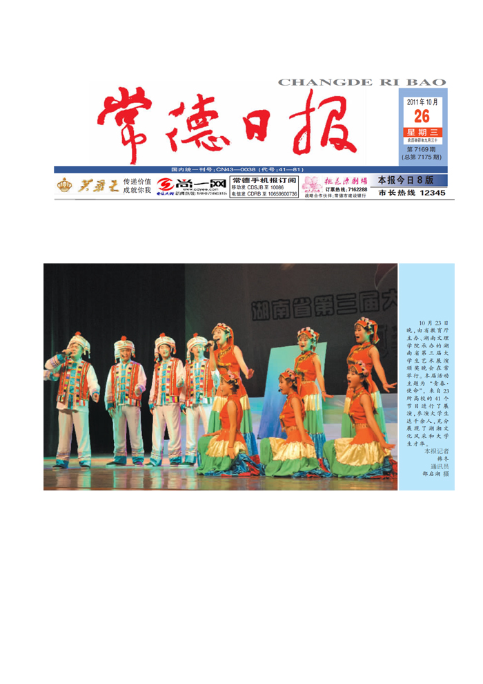 《常德日报》湖南省第三届大学生艺术展演在我校举行