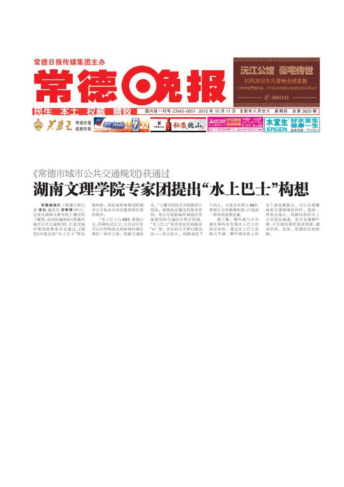 常德晚报:湖南文理学院专家团提出“水上巴士”构想