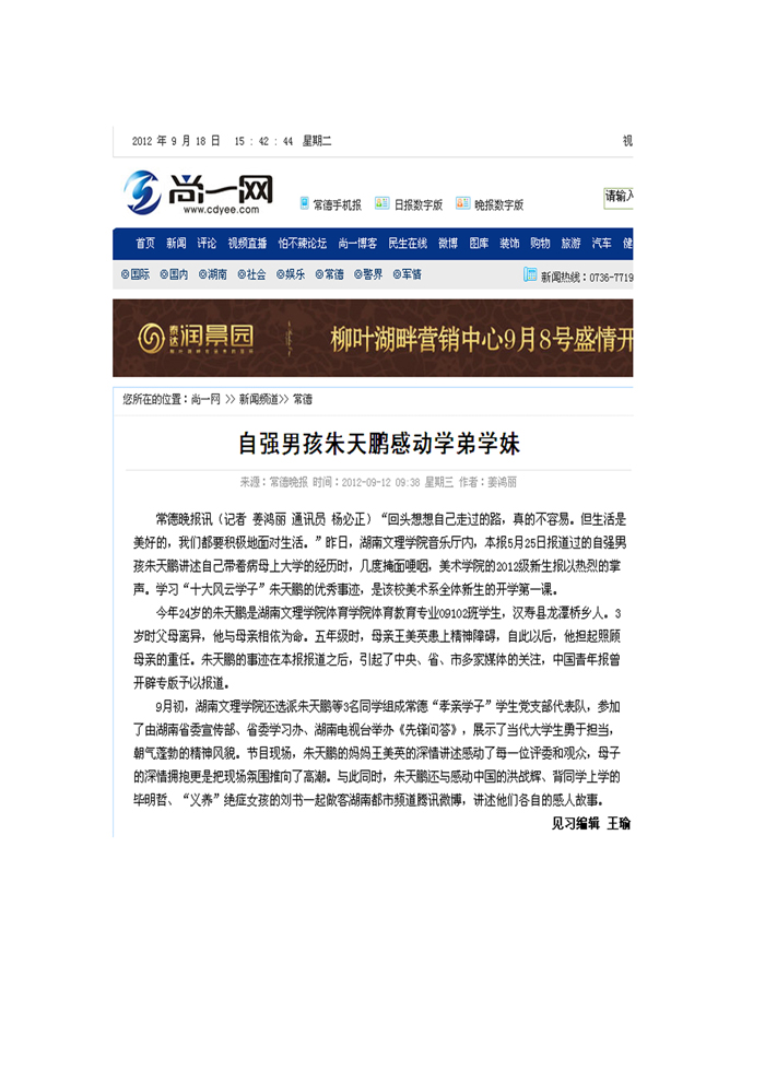 尚一网:自强男孩朱天鹏感动学弟学妹
