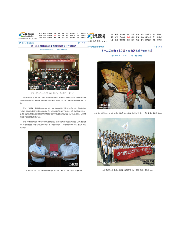 中国台湾网:第十二届湖湘文化之旅在湖南常德举行开启仪式