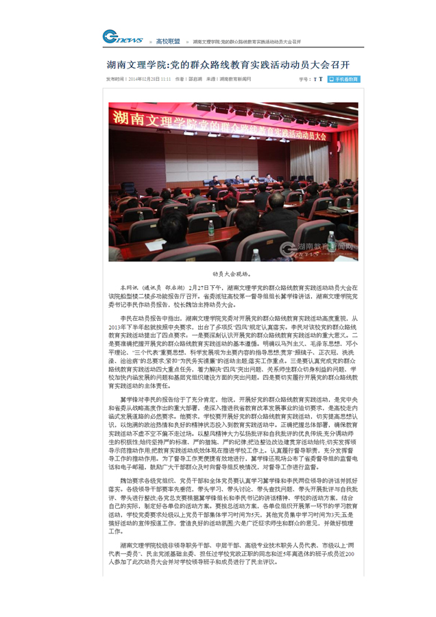 湖南教育新闻网:党的群众路线教育实践活动动员大会召开