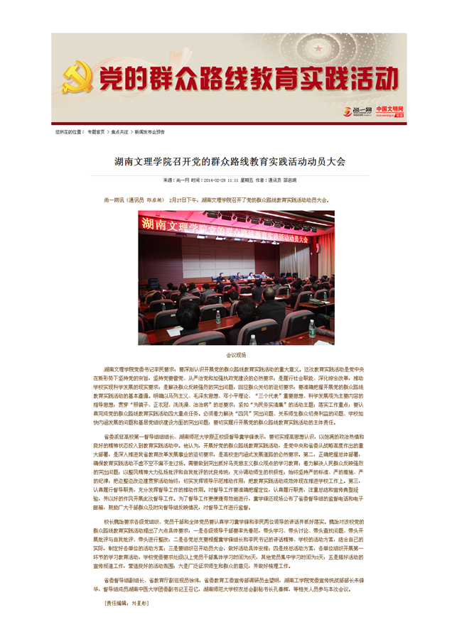 湖南文理学院:党的群众路线教育实践活动动员大会召开