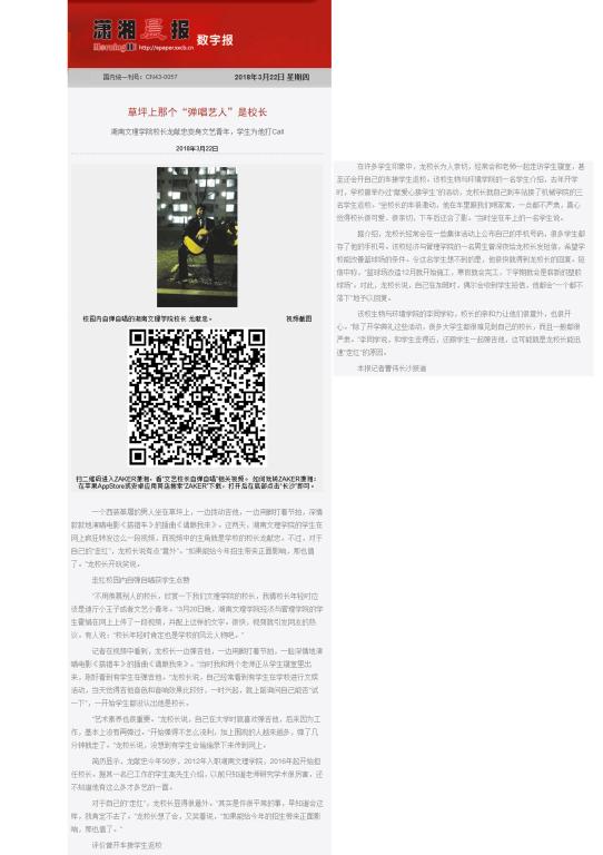 潇湘晨报:草坪上那个“弹唱艺人”是校长