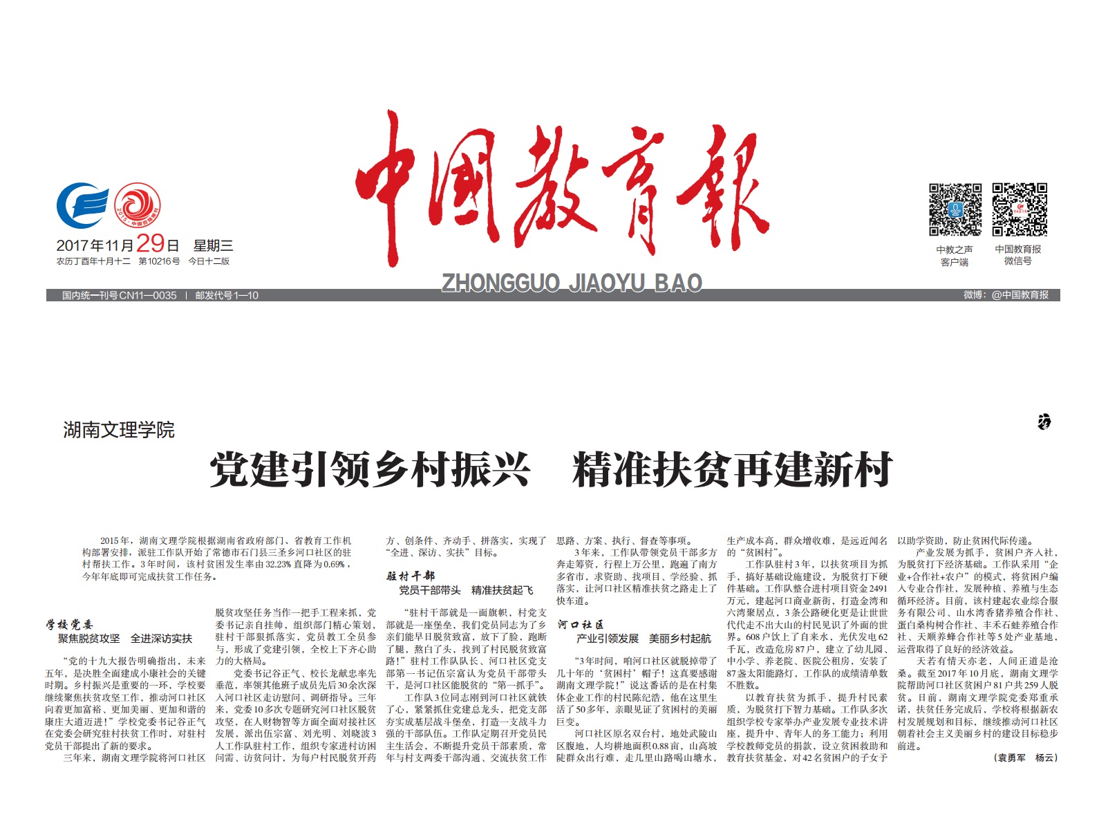 中国教育报:党建引领乡村振兴,精准扶贫再建新村