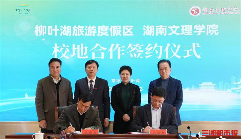 三湘都市报3月8日讯(通讯员 易姣 周玲 全媒体记者 刘镇东)近日,湖南文理学院与柳叶湖旅游度假区校地合作签约仪式在柳叶湖旅游度假区举行。学校校长刘宇文和区党工委副书记、管委会主任张凯签署校地合作协议。