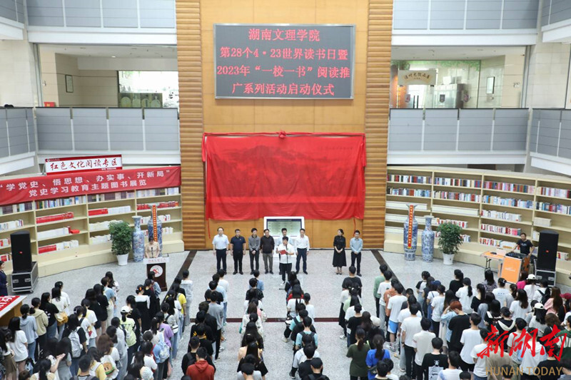 湖南日报·新湖南客户端4月23日讯(通讯员 龙春芳 聂旋)今天是第28个世界读书日。湖南文理学院2023年“一校一书”阅读推广活动启动仪式暨校友贺长安捐画揭幕仪式在图书馆举行。学校师生代表200余人参加活动。