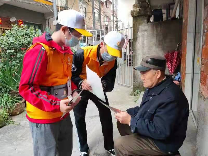 大学生党员在社区宣传冬季防火知识